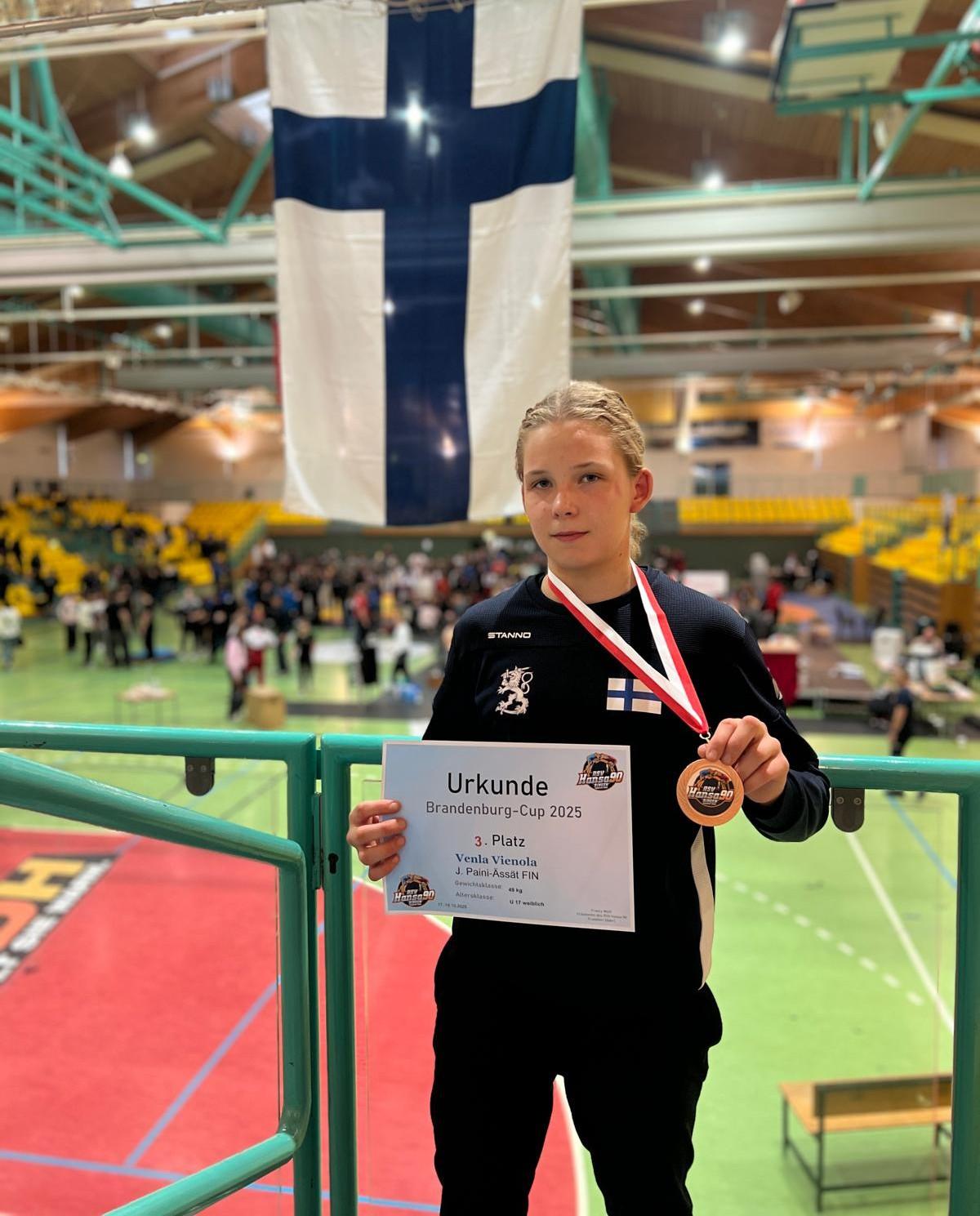 Venla osallistui kovatasoiseen Brandenburgin kilpailuun elämänsä ensimmäistä kertaa. Hän paini U17 sarjassa 49kg. Ensimmäisessä ottelussa Venla kohtasi vuoden takaisen U17 Euroopan mestarin, Saksan Halilja Azimovin. Hyvästä painista huolimatta Venla kärsi 3-2 tappion saksalaiselle. Toisen ottelun saksalaista Leja Schüßleria vastaan Venla voitti selätyksellä ensimmäisellä jaksolla pisteiden ollessa 2-0 Venlalle. Kolmannen kierroksen ottelussa Venla sai luovutuksen, taas saksalaiselta. Lohkon ratkaisevassa päätöskamppailussa Venla voitti Saksan Marlene Scalzon pistein 2-1. Toisessa lohkossa oli saksalaisten lisäksi ruotsalainen ja itävaltalainen, mutta mitaliotteluihin eteni kaksi saksalaista. Pronssiottelussa Venla jätti saksalaisen Emma Hinzin nollille loppulukemien ollessa 4-0. Ensimmäinen mitalisija U17 sarjassa Pohjoismaiden ulkopuolella käydyistä kilpailuista Venlalle. Sarjan mestariksi paini loppuottelun 6-1 voittanut Madina Bayramova, joka sijoittui U17 EM-kilpailuissa kesäkuussa viidenneksi.